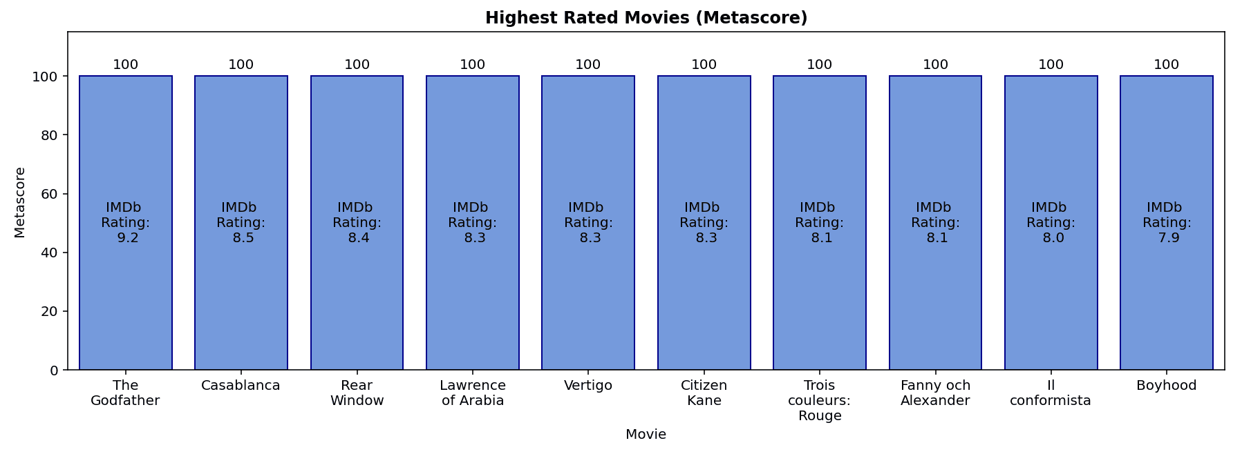 What are the highest rated movies - Highest Rated Movies Bar Chart (IMDb-Metascore) EDA